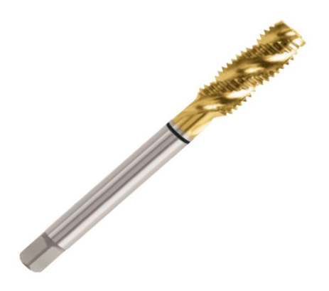 In the following figure, we can see that the end of the spiral flute tap is flat. It removes material faster than any other tap because it has more cutting edges. To use these taps, there is a requirement for pre-tapping. These taps are used for blind holes and hard materials where chip accumulation is a problem.