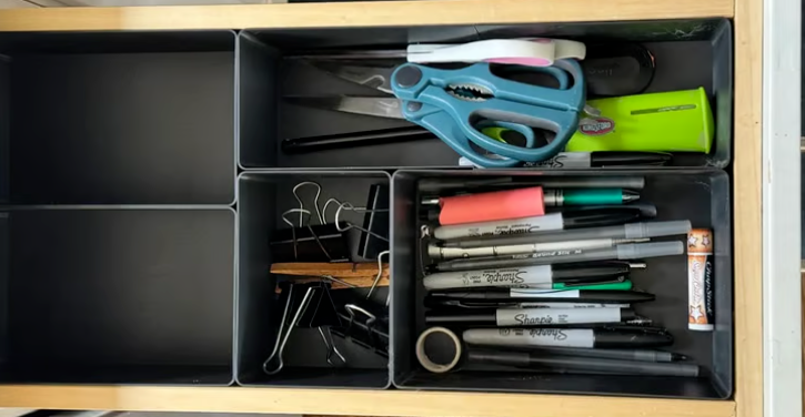 The Ikea Alex is a popular drawer system used by many makers. If you’re looking for a simple system to organize the drawers of this furniture, look no further! This system is specifically designed for it, including boxes of various sizes and some battery organizers.